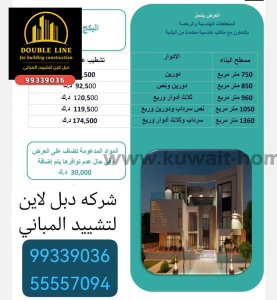افضل مقاول بناء وتشطيبات على المفتاح فى الكويت99339036 شركة دبل لاين