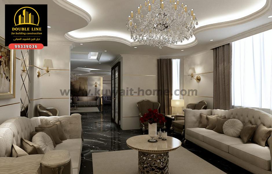 تصميم وتنفيذ صاله استقبال 99339036 بالكويت شركة دبل لاين لتشييد المباني تصميم تنفيذ اشراف